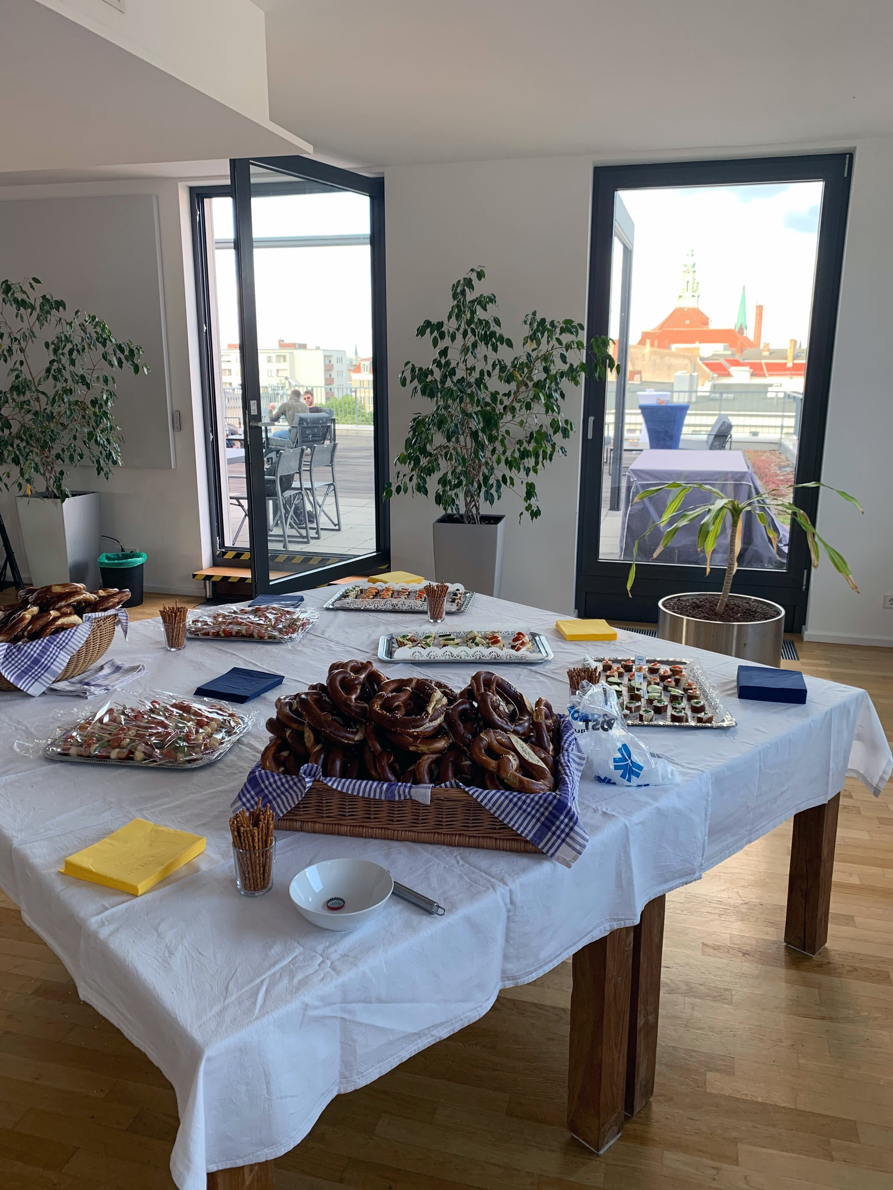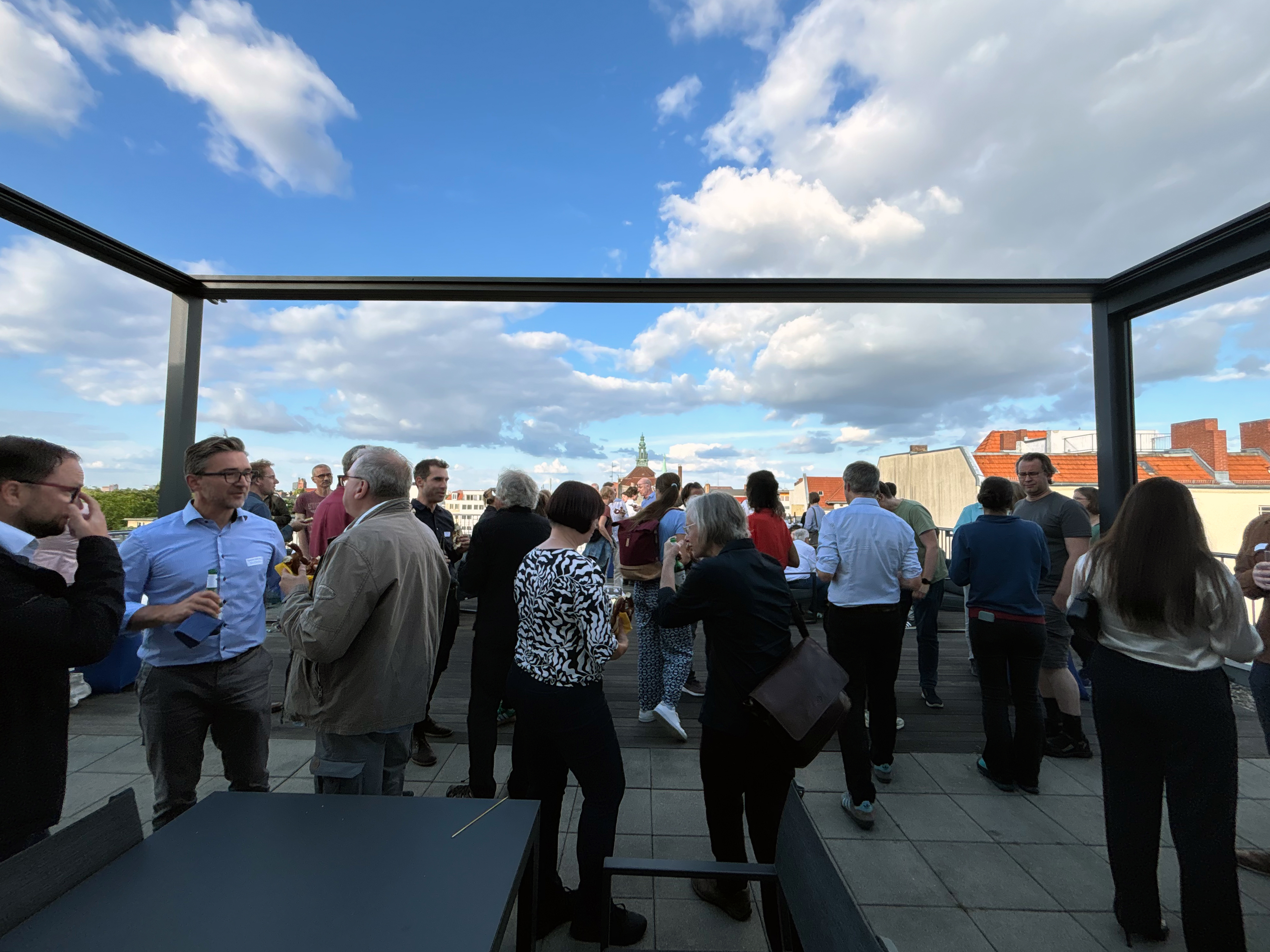 Bei schönem Wetter gehen wir auf die Dachterasse der Technologiestiftung Berlin.