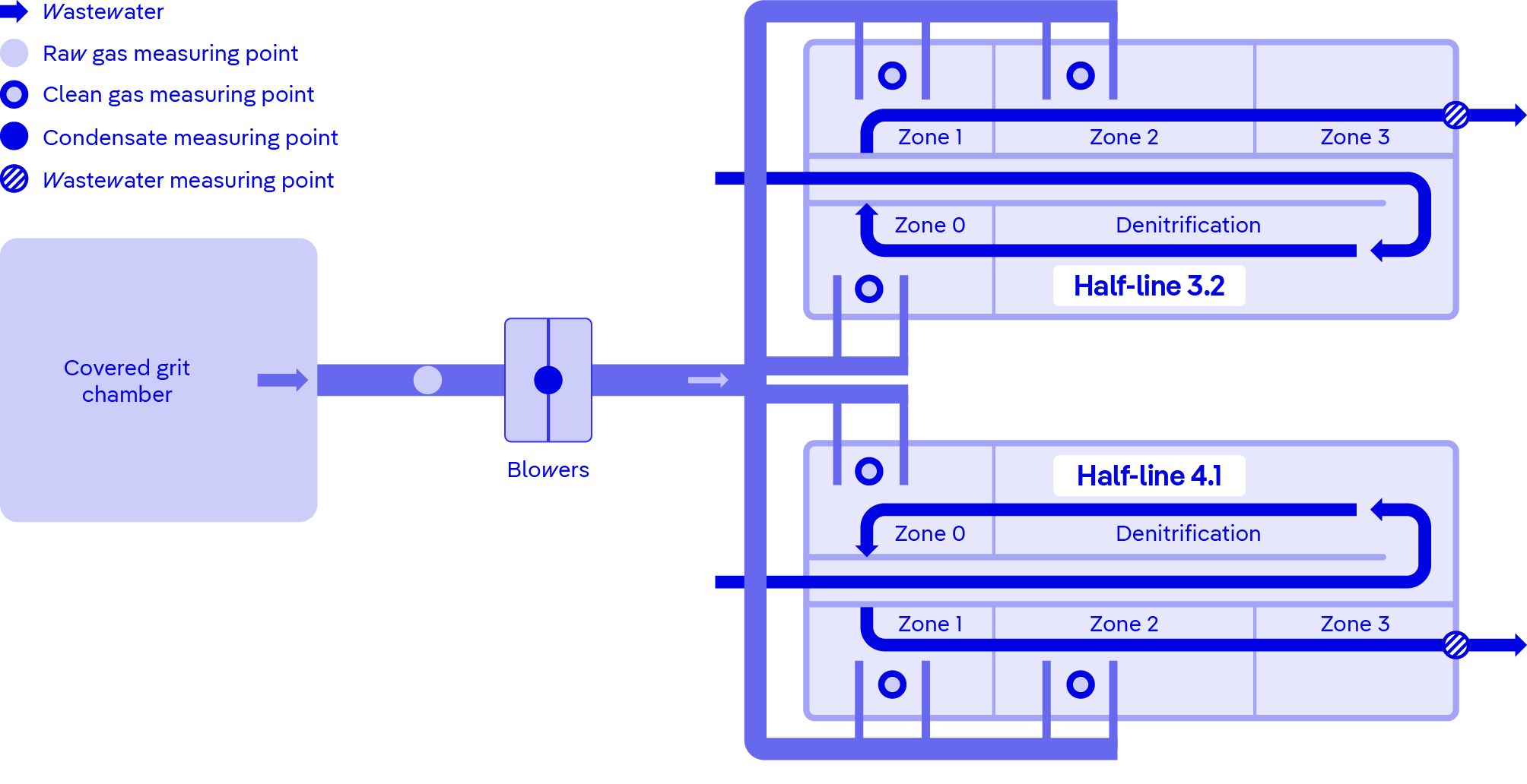 Process diagram of the system for waste air co-treatment in the aeration tanks